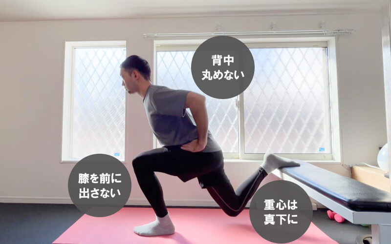 ブルガリアンスクワットは非常に効果の高いトレーニングですが、その分フォームを間違えるとケガにつながりやすい種目でもあります。そのため、ここでお伝えする注意点に気をつけながら行うようにしましょう。